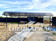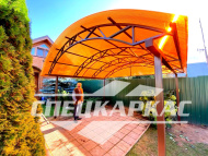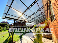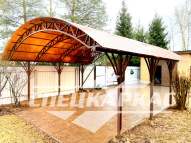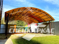 Компания «Спецкаркас» предлагает козырьки, беседки, навесы из поликарбоната любого типа и формата: одно- и двухскатные, прямые и наклонные, арочные и даже куполообразные.